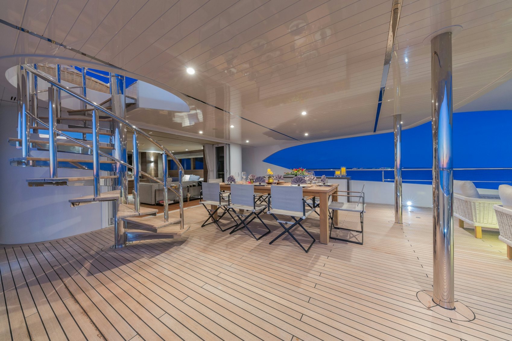 NOTABLE FEATURES OF BIG SKY: ~ Modern design ~ Spacious interior and exterior deck areas ~ Fantastic al fresco dining possibility ~ Onboard Jacuzzi tub ~ Fabulous selection of water toys ~ Waterslide