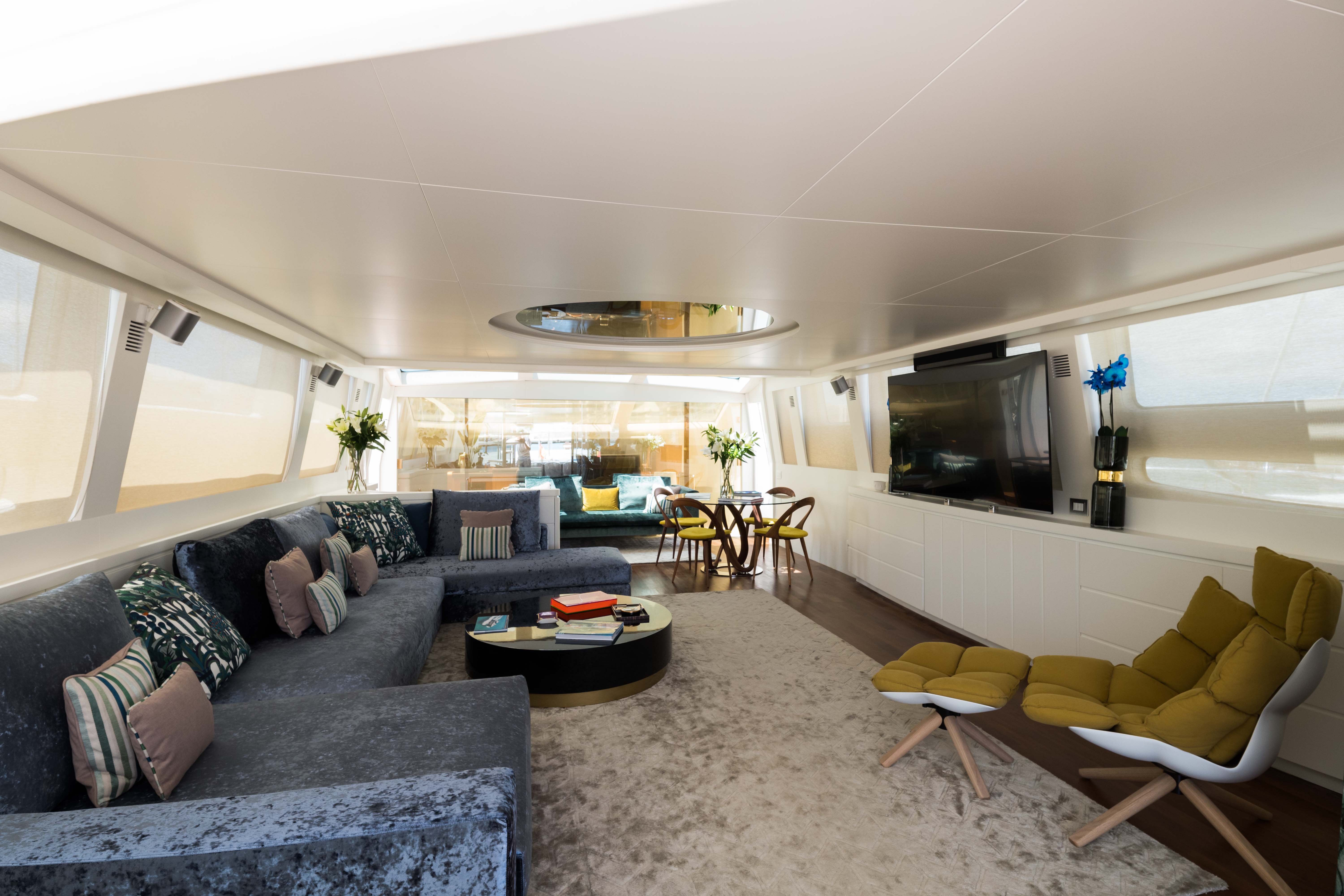 NOTABLE FEATURES OF EVA: Fast performance hull design ~ Excellent on-deck living areas including the main aft deck, foredeck and flybridge ~ Modern bespoke interior decor ~ Open plan salon with ...