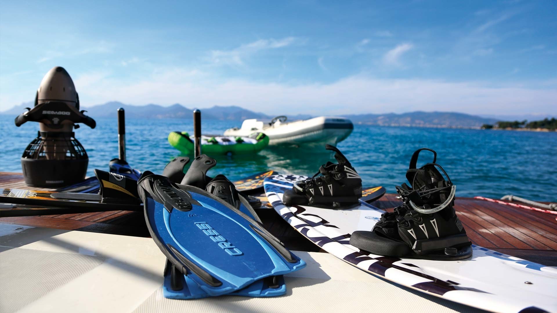 Her salon boasts a modern design and contemporary fittings with a comfortable lounging area to port and a dinette to starboard. This area offers plenty of natural light as well as the opportunity to watch the yacht handled by the captain at speed. A special feature is the fibre optic lighting that illuminates this area at night.