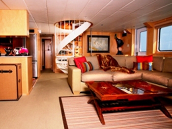The Custom Power Cat SLUMBER VENTURE has a large and spacious main salon with a 54' Plasma TV with complete audio/video library to sit and relax after a delicious meal prepared by the onboard chef. The seating area is situated on the starboard side of the salon and there is a dinette to the port side.