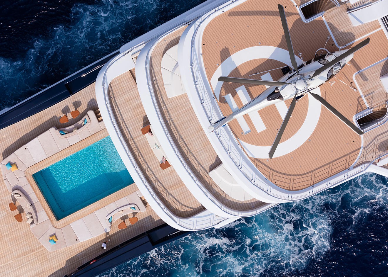 Superyacht Luna by Lloyd Werft Aerial View With Helicopter and Pool