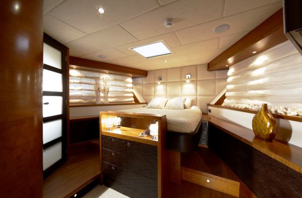 Moonen 97 MAXIMUS (ex DARSEA) can accommodate up to 9 guests in 4 cabins located on the lower deck in front of the engine room, with the crew quarters completely separate, aft of the engine room. This provides charter guests with 4 very large and luxurious staterooms.