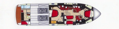 The Aicon 64 motor yacht ANTARES III can accommodate 6 guests in one Master, one VIP and one Twin.
