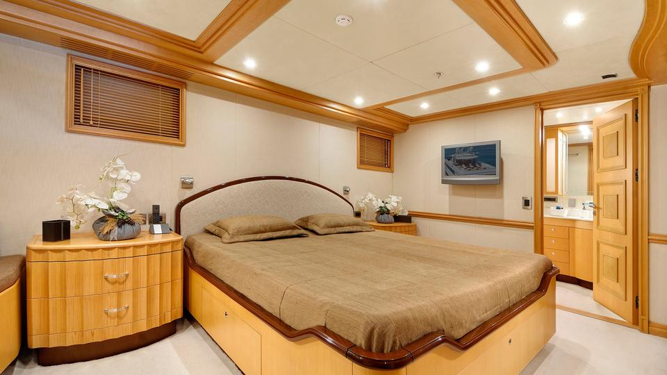 GOLDEN HORN’s impressive sun deck can be accessed from the owner's aft deck or the foyer on the upper deck. It is particularly spacious with a large area under the shade of a permanent hard top.