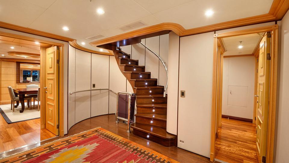 On the Portside the pantry leads to the very large and professionally laid out galley which has direct access to the crew quarters.