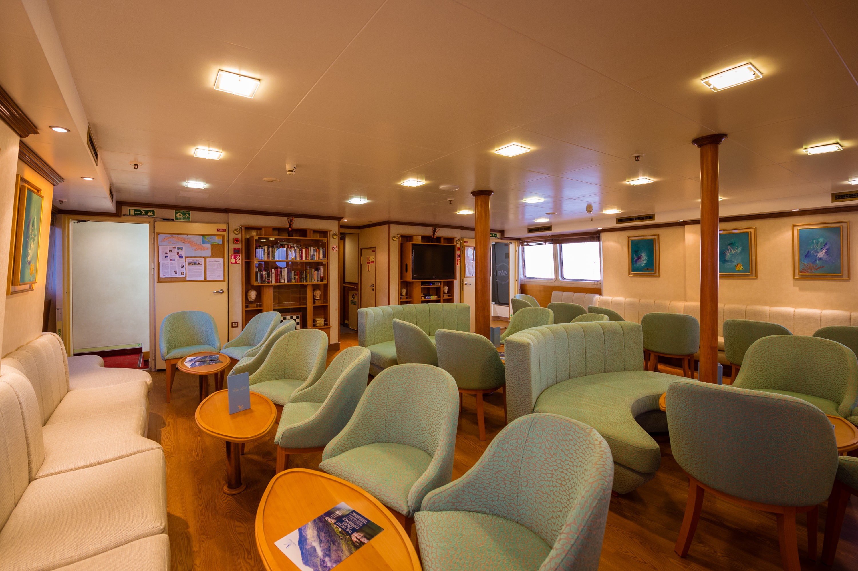 There are 12 on the lower deck, 12 on the main deck and 1 on the bridge deck of the vessel. All cabins are equipped with the standard of amenities including a TV, VHS, mini-bar, safe deposit box and en-suite marble finished bathrooms. They are all handsomely designed and finished with lustruous wood trims and warm fabrics.