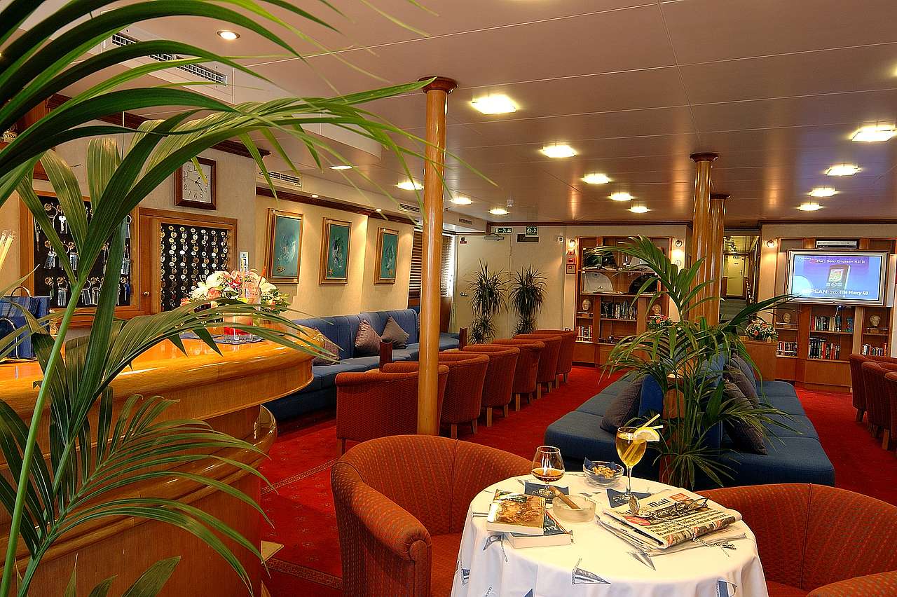 Guests have access to a main salon with plush seating on the main deck aft with a reception area and a bar area. The main deck lounge provides intimate surroundings to relax at any time. There is a dining room on the lower deck ...