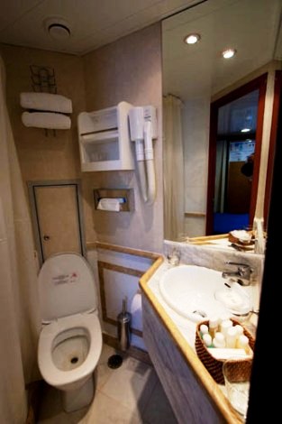 All cabins are equipped with the standard of amenities including a TV, VHS, mini-bar, safe deposit box and en-suite marble finished bathrooms. They are all handsomely designed and finished with lustruous wood trims and warm fabrics.