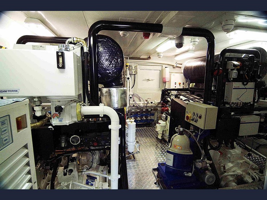 The Master cabin boasts a king size bed (2m x 1m80), a stunning ensuite bathroom with sunken bath/rain forest shower, double sinks and skylights that turn opaque in an instant should privacy be required. The cabin also features an 80cm flat screen TV, sat TV system with full SKY package which is relayed to the saloon, sky lounge and VIP cabin.