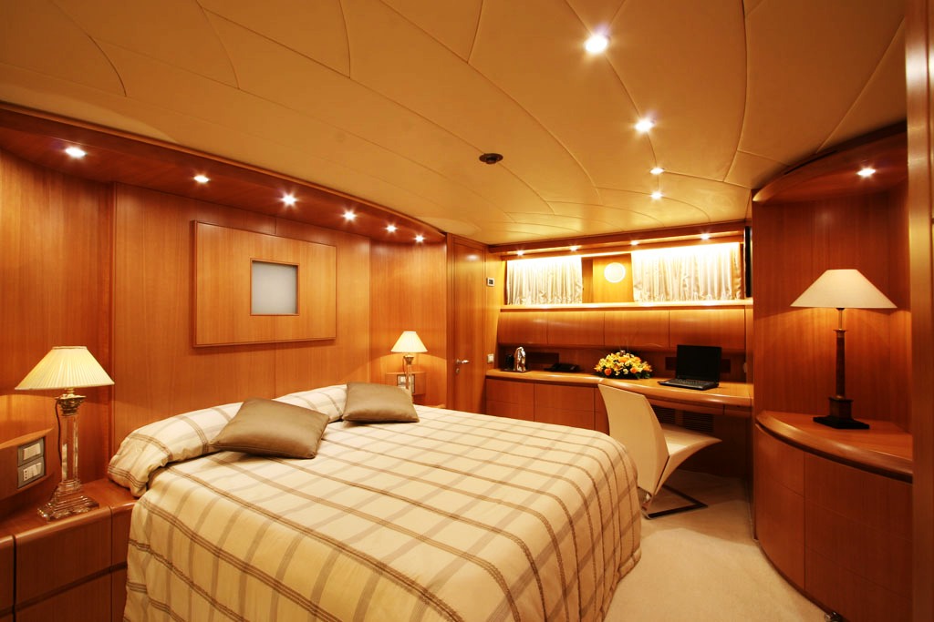 SEFIRA offers superior craftsmanship and luxurious furnishings. Her spacious aft deck features a large glass sliding door that is electronically and/or manually operated. It is through these doors you enter the vessels luxurious main salon.