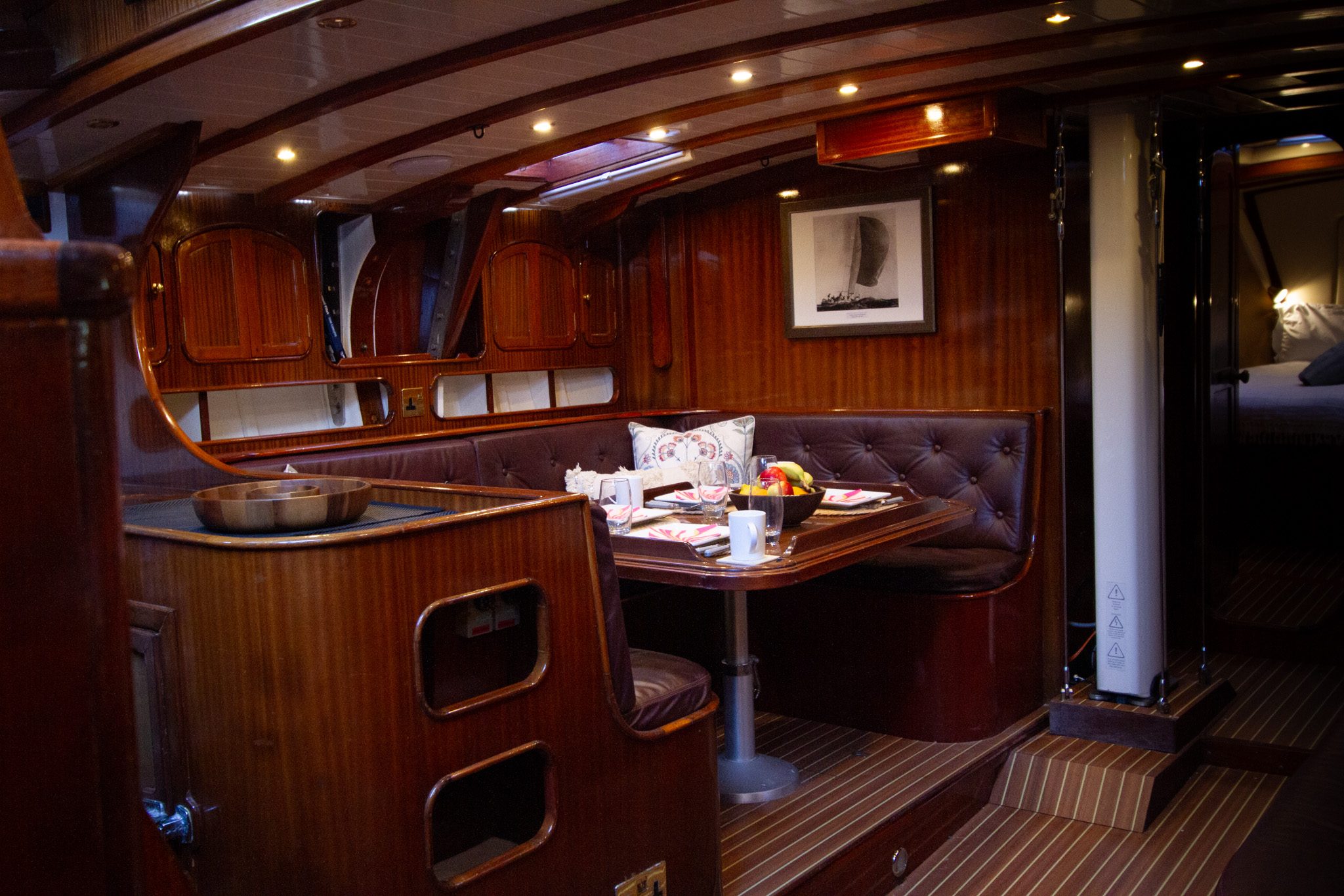 Towards the bow, there is the galley which has direct access to the crew quarters and a large dining area that can accommodate up to 10 guests.