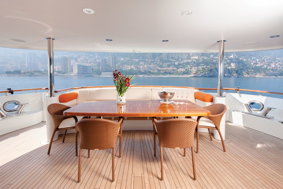 The Moonen 124 NORTHLANDER has a 4 deck layout with a central atrium and spiral staircase. Her layout features a main-deck master suite forward with the remaining cabins including 2 double and 2 twin guest staterooms on the lower deck accessed via the central staircase.