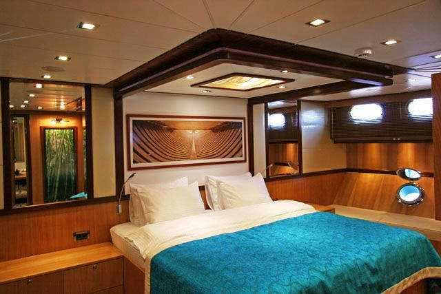 S/Y GETAWAY is able to accommodate up to 8 guests in 4 staterooms. The cabin configuration consists of a master cabin with a Californian King size bed, a TV and entertainment system with air conditioning and a private en-suite.
