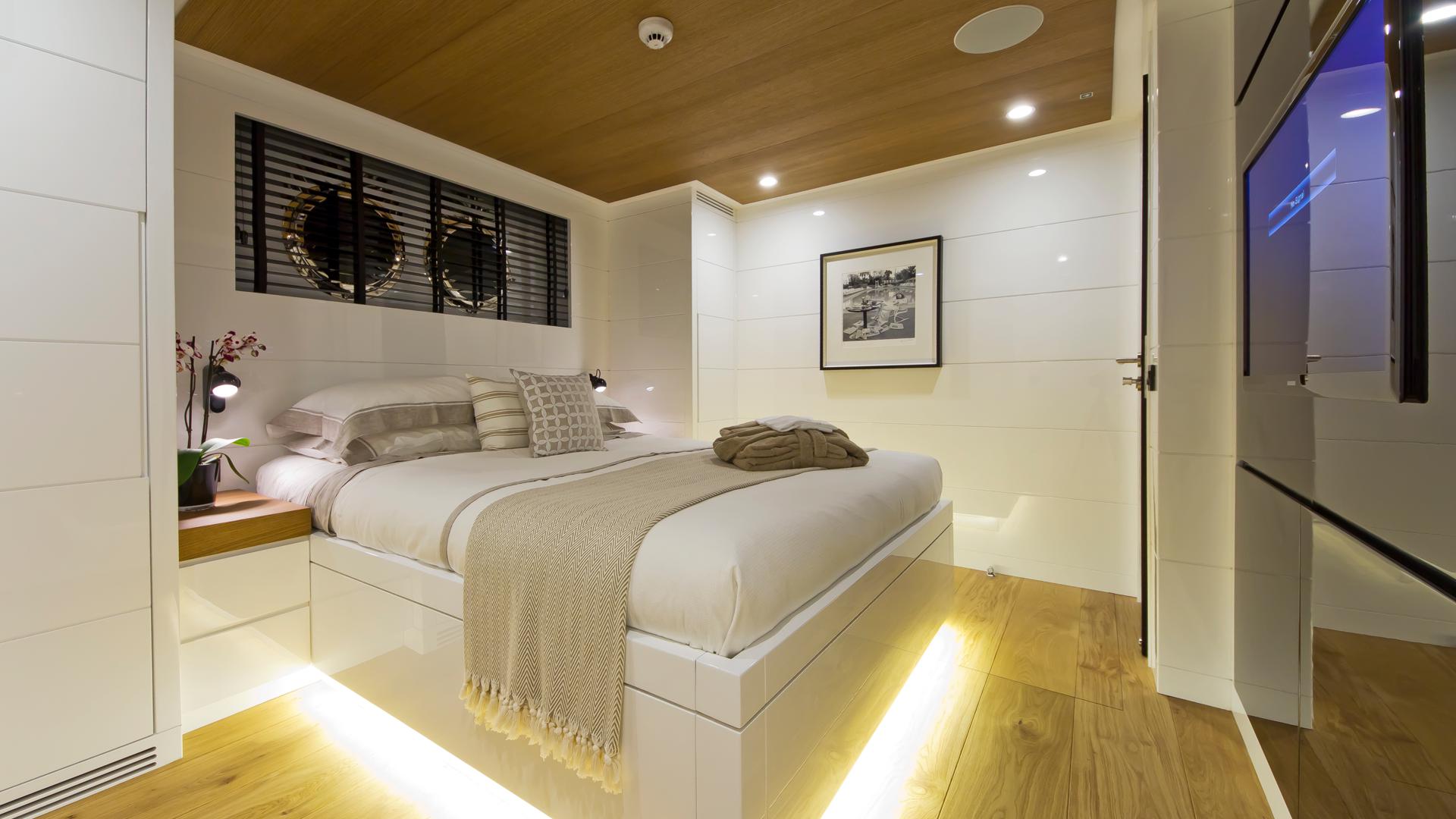 Motor Yacht Preference- guest cabin. Photo credit Tansu Yachts