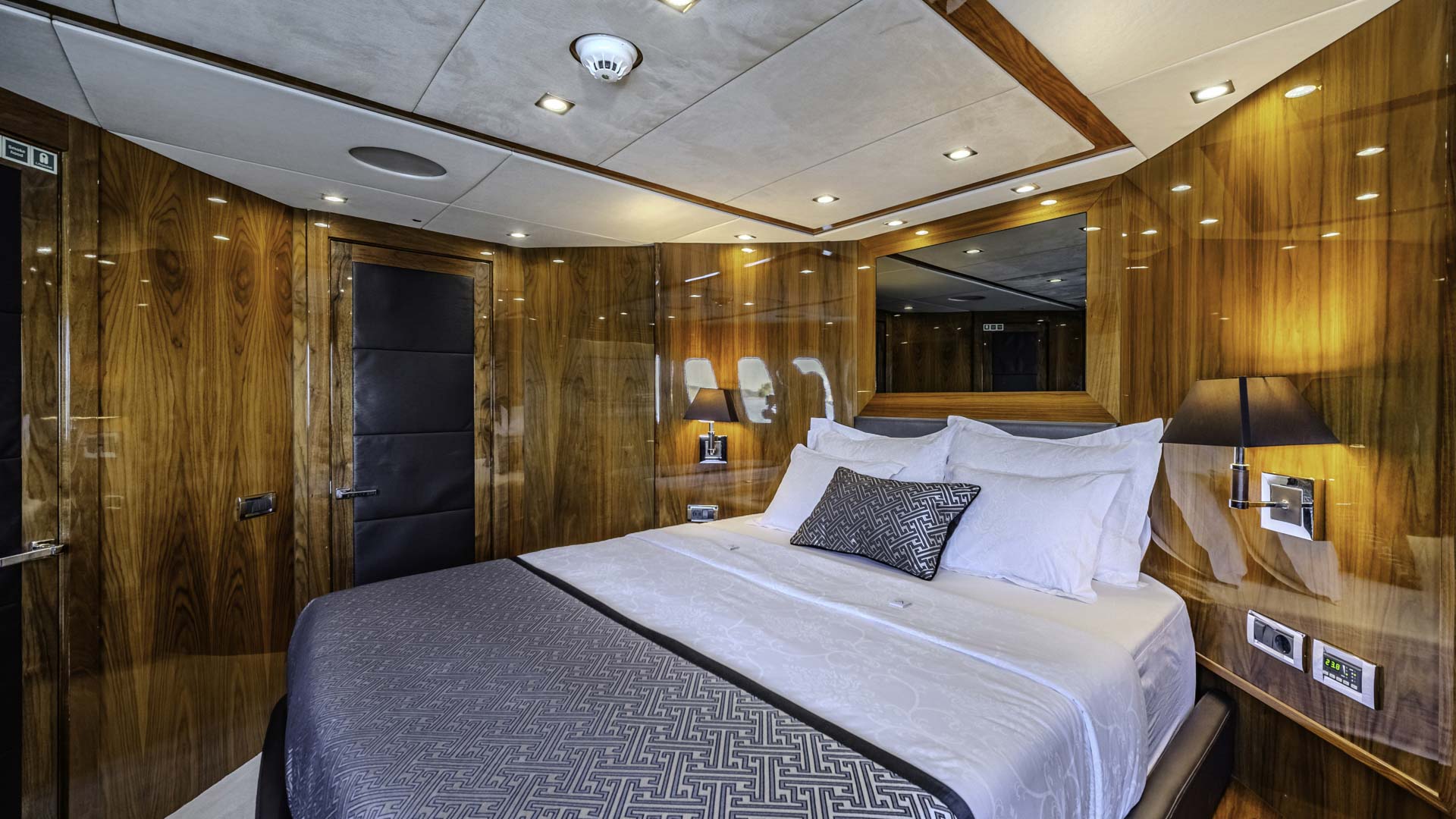 The master stateroom features a walk-in wardrobe, ensuite facilities and fantastic 180-degree visibility. There are also two VIP and two twin cabins.