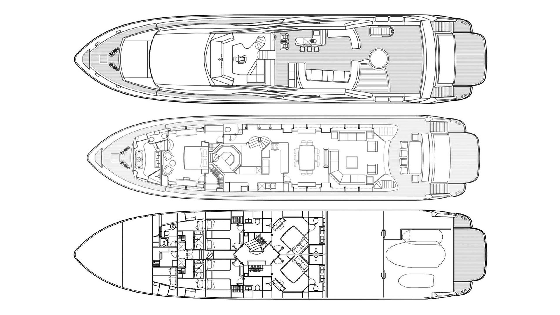 The formal dining table is perfect for 10 guests who can also enjoy some great panoramic views through large side windows of the salon. The upper deck offers a more casual ambiance, where the guests can relax in the ample seating area with a cuppa or sip on some cocktails.