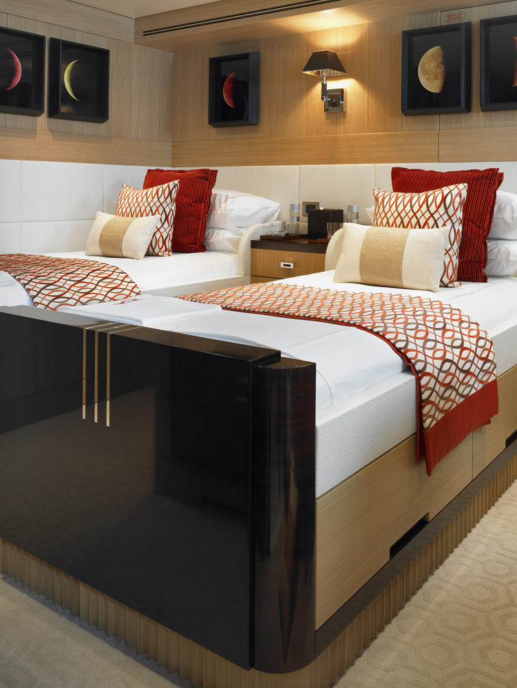 The superyacht’s interior design can be described as ‘crisp yet homely’.