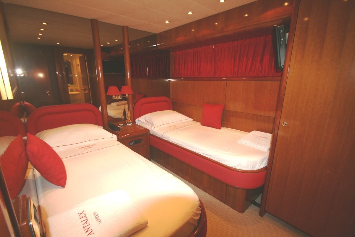 ANTALEX is a 26m (88ft) Falcon 86 Yacht built in 2002 and refitted in 2009. She combines high performance cruising of 20-26 knots with a comfortable interior and efficient layout. She can accommodate 8 guests in 4 ...