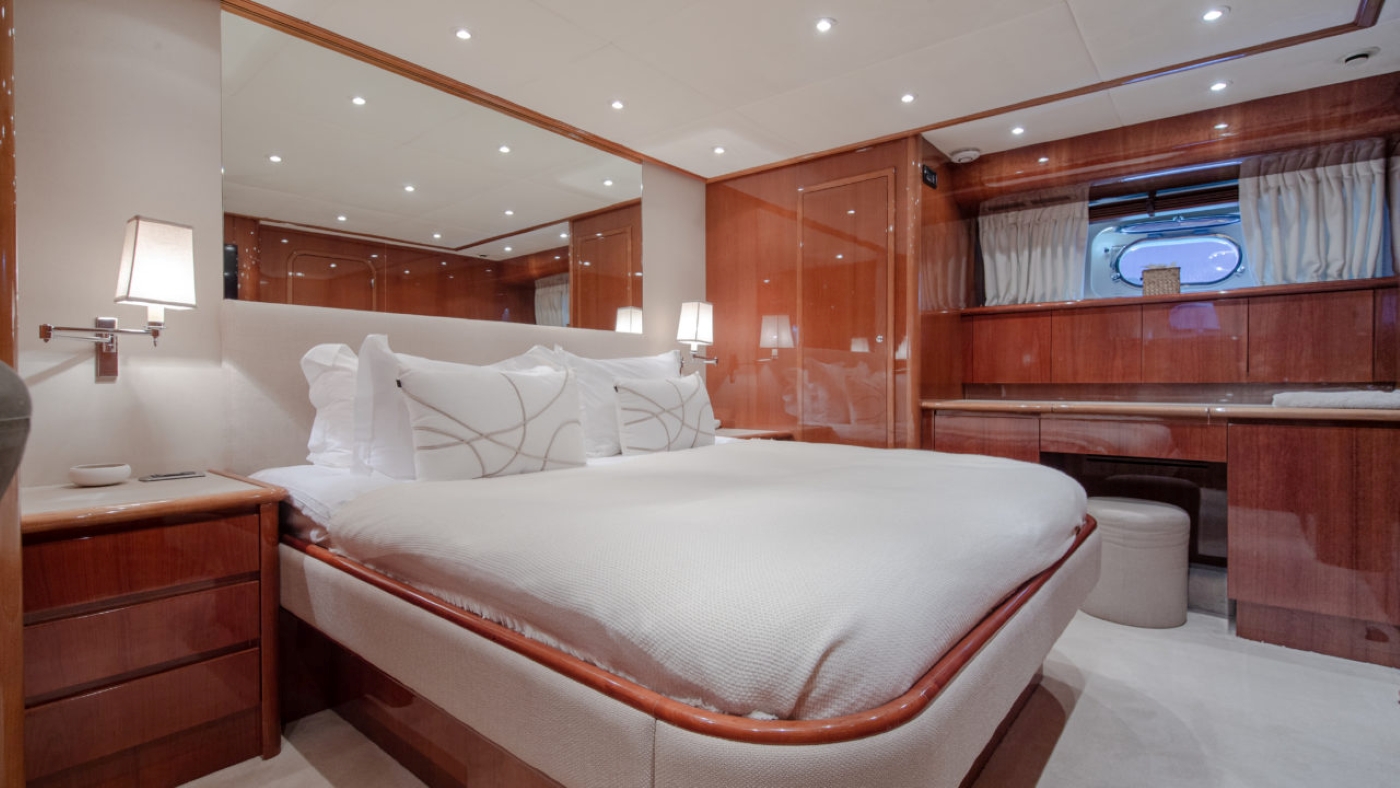 The Master cabin features an ensuite with spa pool bath and a flat screen TV. The VIP cabin has an en suite plus a flat screen TV. Two twin cabins each have a pullman and en suite bathroom.