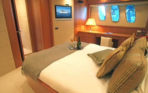 Motor yacht NEW BEGINNINGS OF LONDON can accommodate up to 8 guests in 4 cabins. Her Master cabin is full width of the beam and located aft.