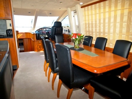 The beautiful dining area with seating for up to 8 for formal dining is located forward of the salon. NEW BEGINNINGS OF LONDON is fully air conditioned throughout for maximum comfort.
