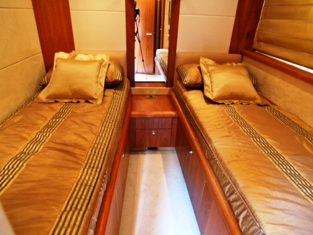 The salon features seating on comfortable couches to port and starboard, along with coffee tables and a complete entertainment centre. The beautiful dining area with seating for up to 8 for formal dining is located forward of the salon.