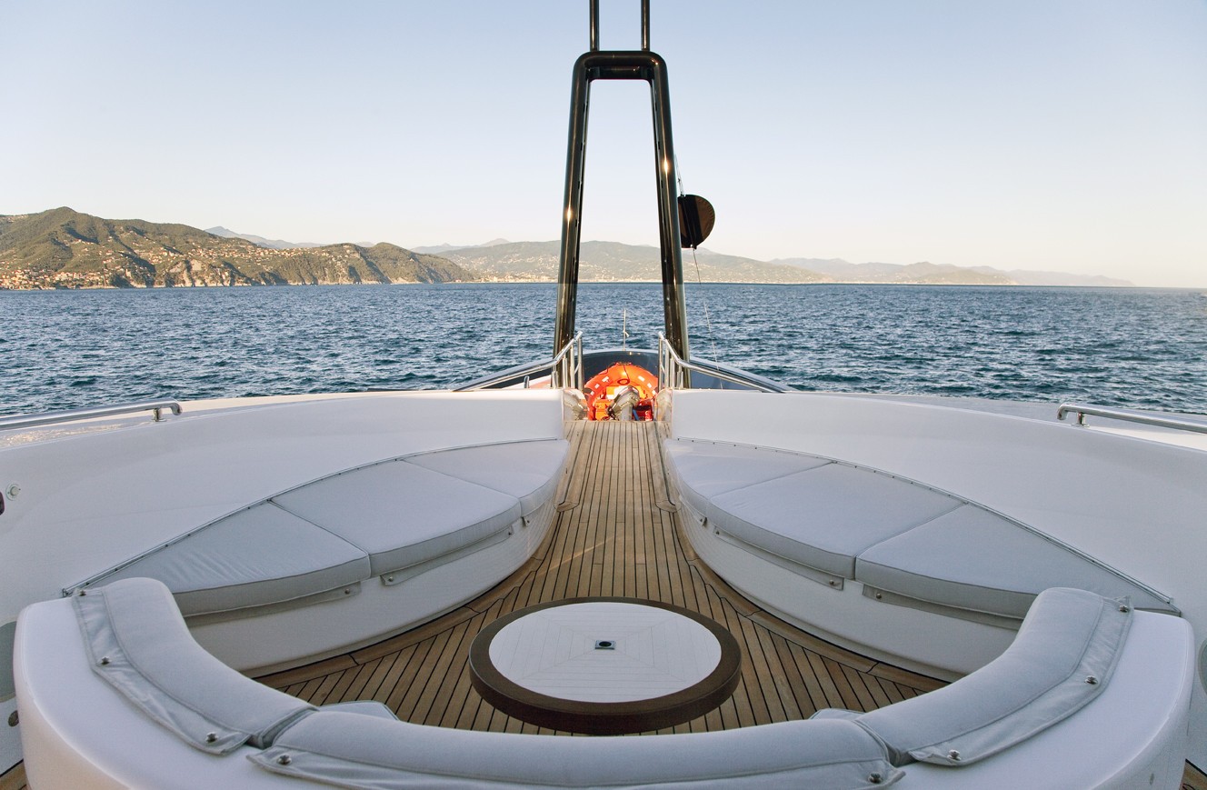 Her contemporary interior is a blend of warm neutral tones accented by hot splashes of colour in the soft furnishings. The decks are exceptionally spacious, three of the four are serviced by an elevator.