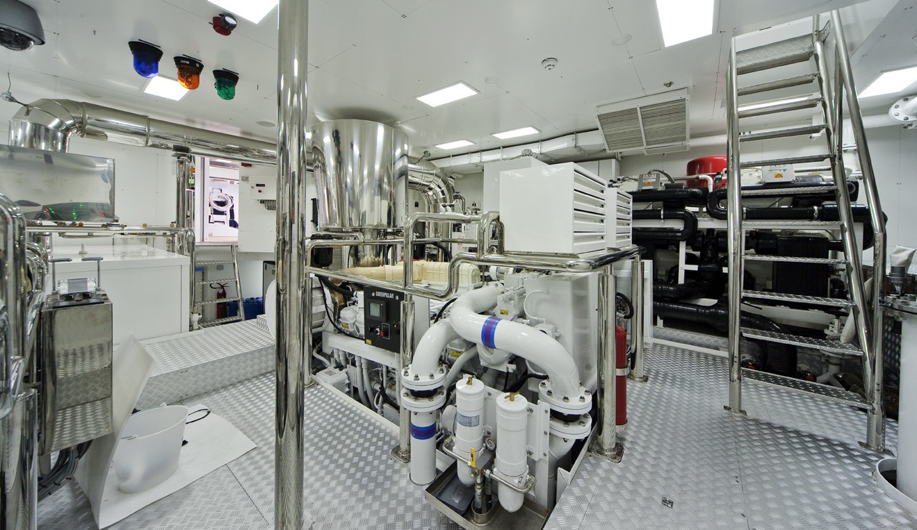 The decks are exceptionally spacious, three of the four are serviced by an elevator. A dining table can seat up to 14 guests in the dining salon, and plush sofas and coffee tables are found in the bright yet cosy salon.