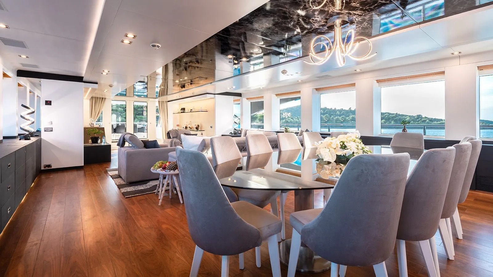 NOTABLE FEATURES for AFRICA I: Beautifully styled light and airy interiors ~ Open plan salon and dining ~ Upper sky lounge with optional cinema ~ Full beam master cabin on the main deck with private exterior space ~ Excellent ...