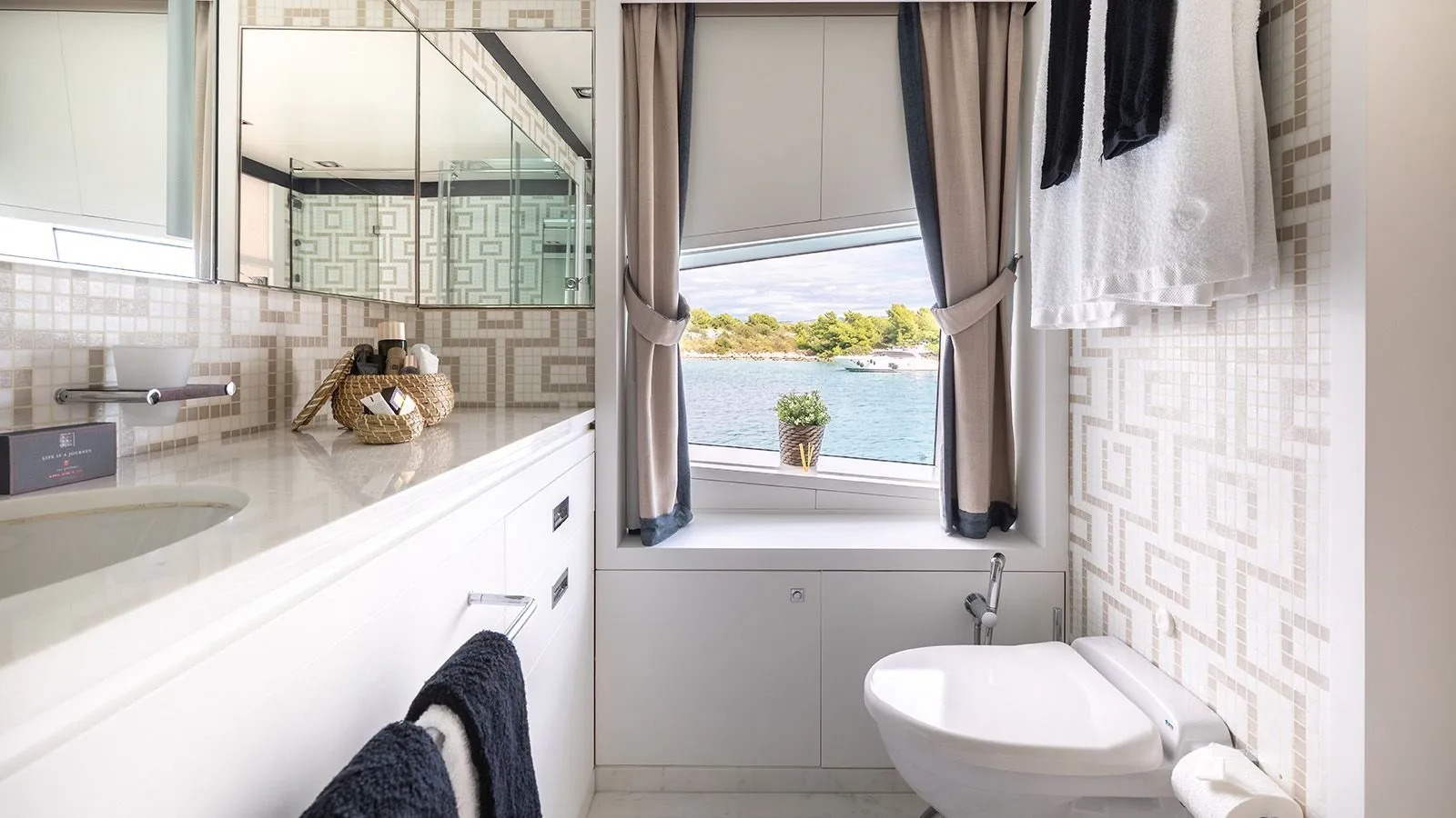 The yacht is 47 meters (154.20ft) in length overall, with a beam of 8.8 meters and accommodation for up to 12 charter guests, in 6 cabins. This sleek and contemporary AFRICA I motor yacht underwent a refit in 2019, which included gorgeous new interior design, new water-sport equipment, new carpets and A/V system.