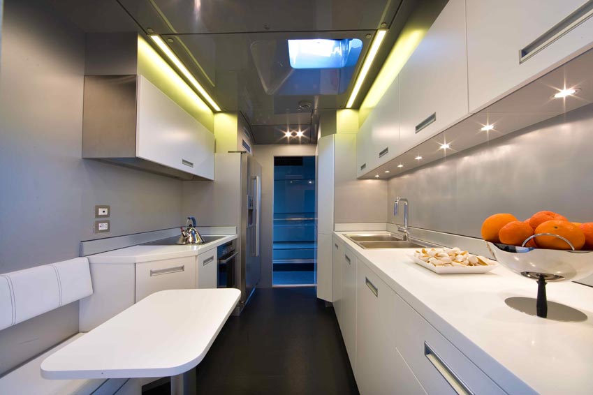 Launched in 2009, she was built by Arcadia Yachts of Italy, with her naval architecture and futuristic interior design both undertaken by Francesco Guida. She is able to accommodate 8 guests overnight in 4 cabins.