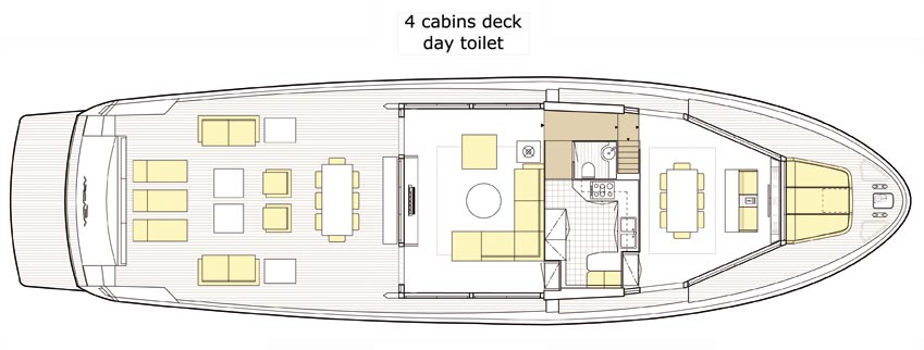 She is able to accommodate 8 guests overnight in 4 cabins.