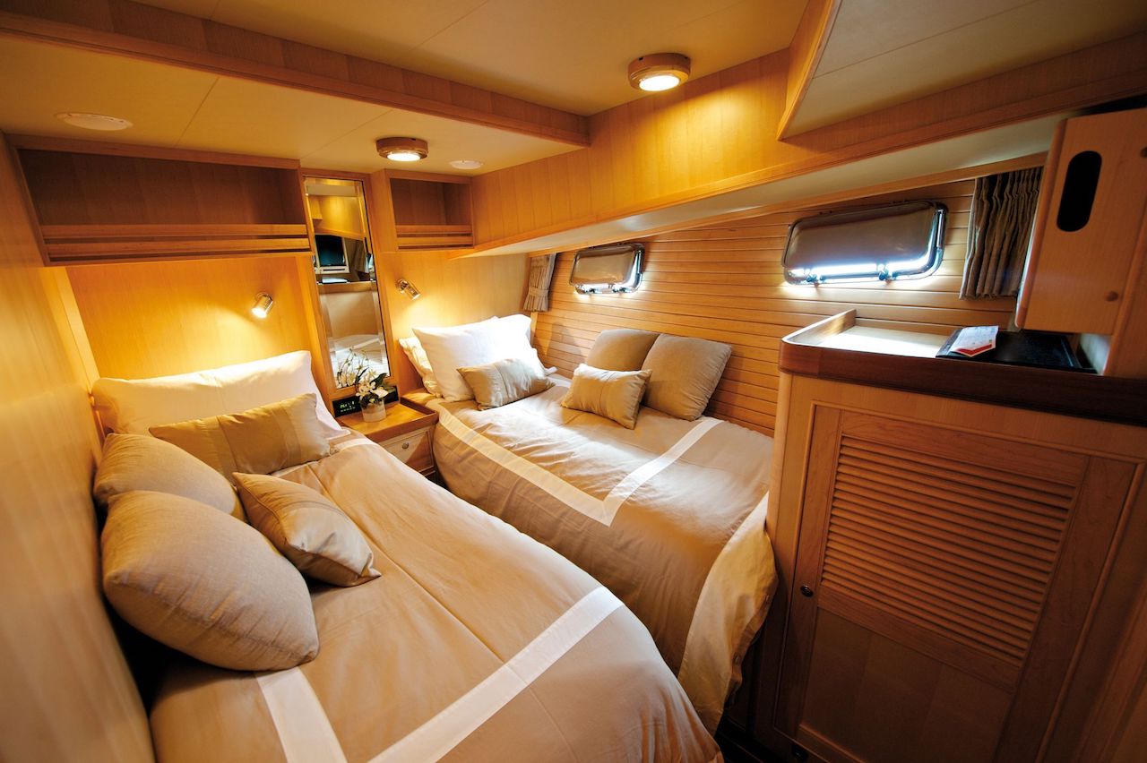 Accommodation onboard is offered for up to 6 guests in four beautiful cabins. Guests onboard are taken care of by a crew of three staff members.