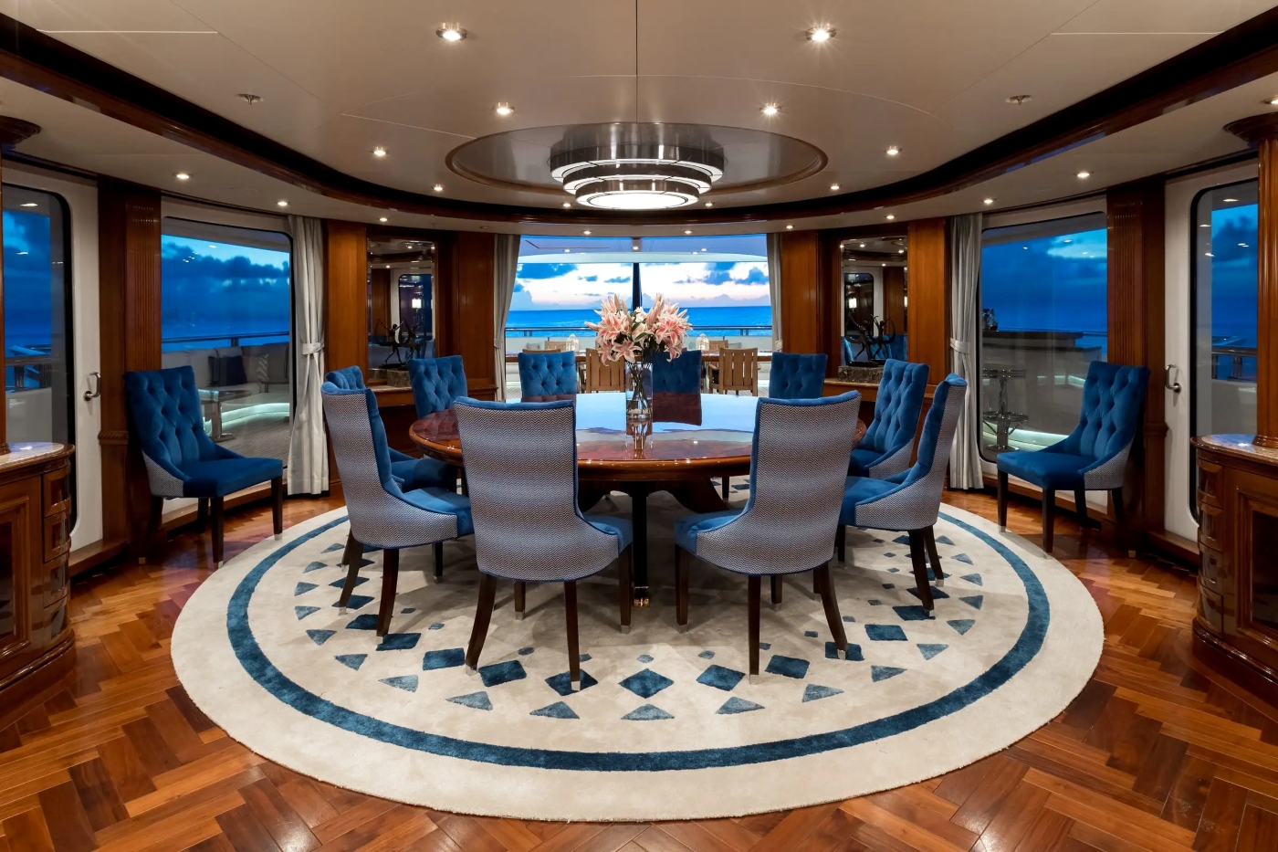 Superyacht TITANIA features exterior styling by Espen Oino and an impressive interior designed by Zuretti. She is one of the largest and most distinctive charter superyachts in the world.