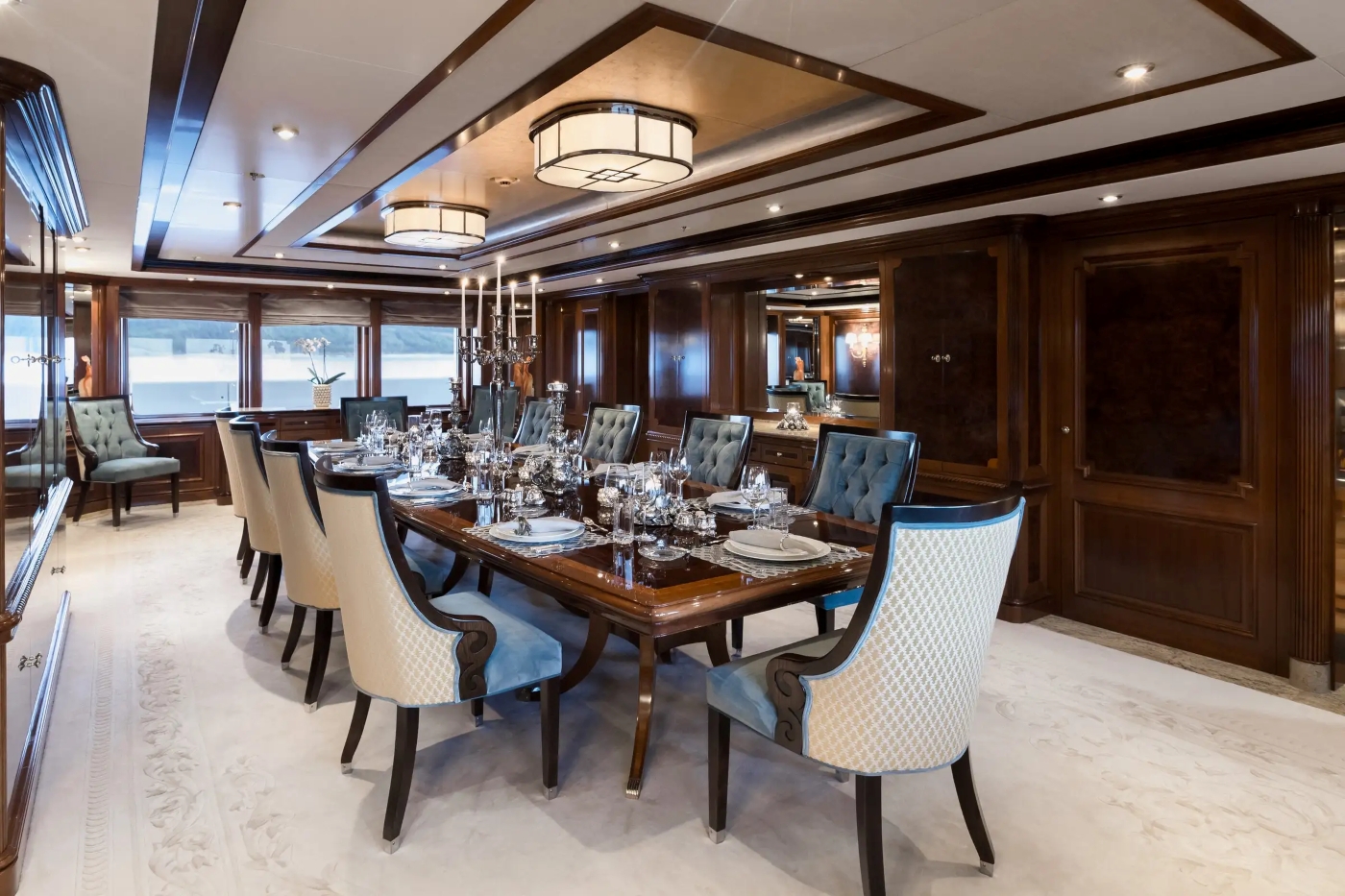 NOTABLE FEATURES: ~ Professional crew of 21 ~ Exterior dining ~ 130sm Master suite ~ Spa pool ~ Jacuzzi with a bar ~ Dockside party for 200 guests ~ Extensive beach club ~ Sauna convertible into a night club ~ Masseuse and ...