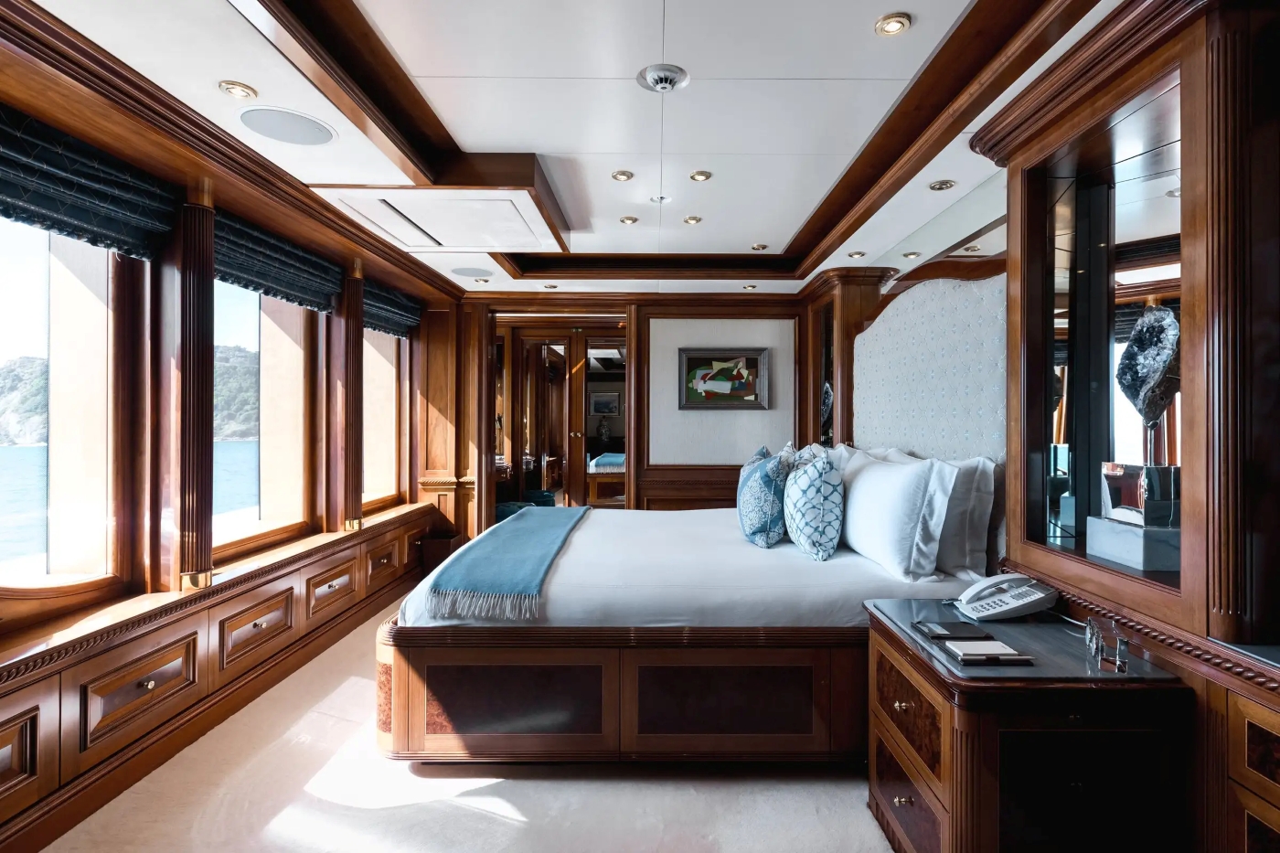 The main deck highlights include the formal dining area and the massive owner’s stateroom.