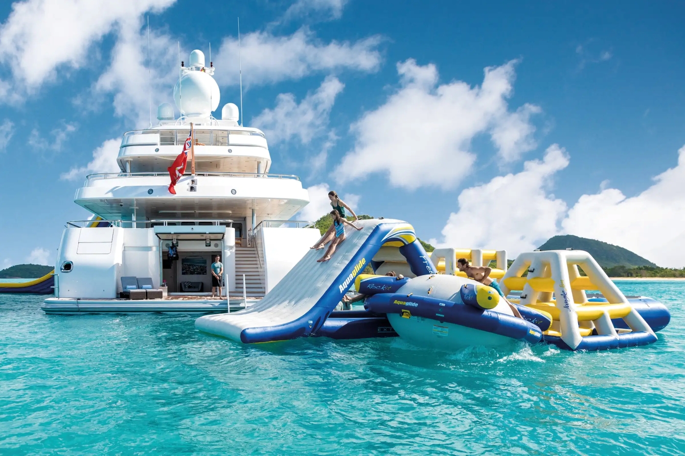 NOTABLE FEATURES: ~ Professional crew of 21 ~ Exterior dining ~ 130sm Master suite ~ Spa pool ~ Jacuzzi with a bar ~ Dockside party for 200 ...