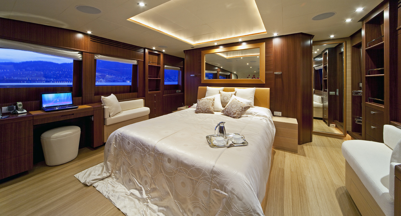 This stylish and modern motor yacht can accommodate up to 10 charter guests sleeping overnight in 5 ensuite cabins - 3 with double beds and 2 equipped with twin beds.