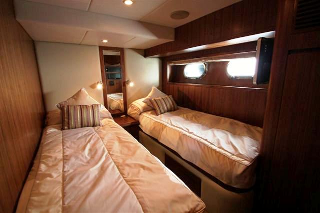 Motor yacht MIDAS TOUCH can accommodate up to 8 guests in 2 double and 2 twin cabins located on the lower deck. She can cruise with up to 12 guests on board.