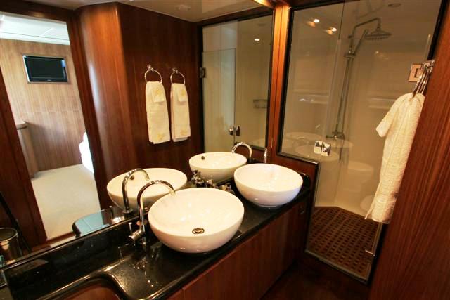Motor yacht MIDAS TOUCH can accommodate up to 8 guests in 2 double and 2 twin cabins located on the lower deck. She can cruise with up to 12 guests on board.