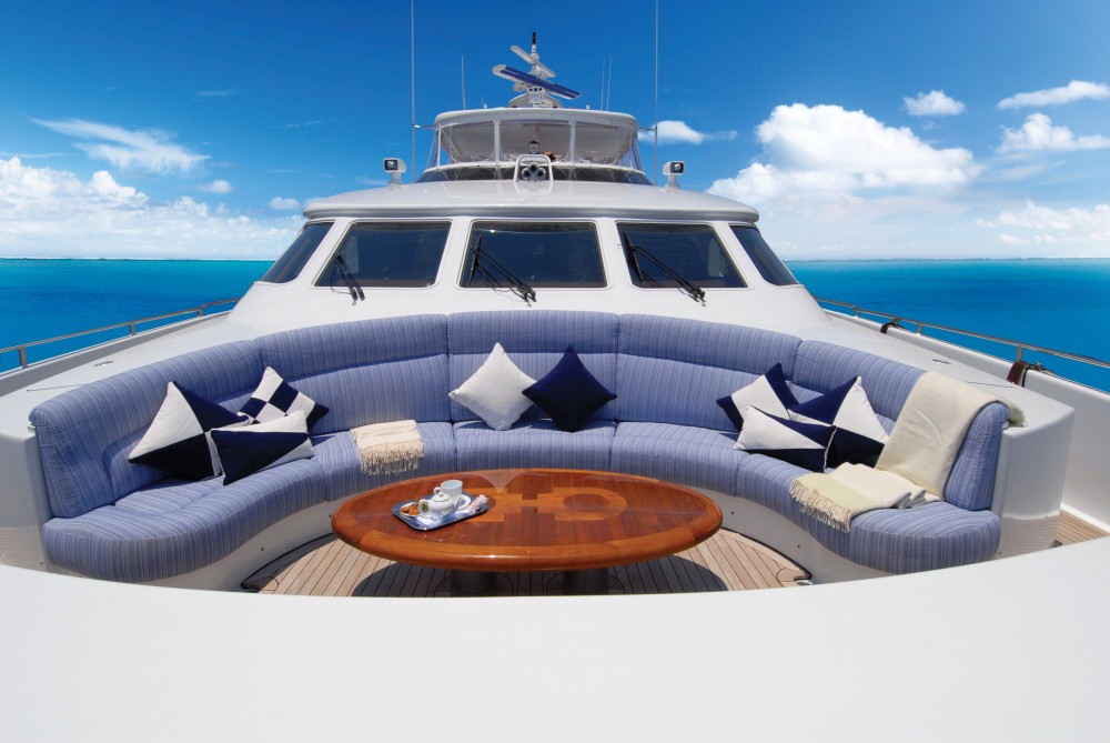 Along with a new modern interior, the motor yacht offers 3 levels of fantastic deck space, including plenty of al fresco dining areas, sunbathing areas and a spa pool on the top deck! She also offers a great selection of water sport toys and a cruising speed of 18-26 knots.