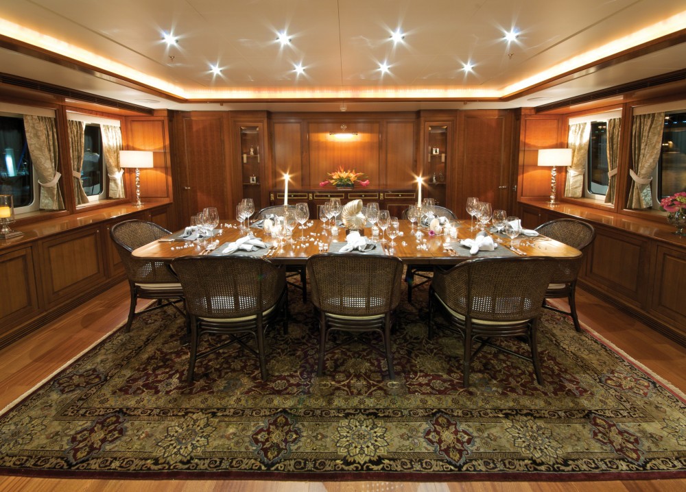 Along with a new modern interior, the motor yacht offers 3 levels of fantastic deck space, including plenty of al fresco dining areas, sunbathing areas and a spa pool on the top deck! She also offers a great selection of water sport toys and a cruising speed of 18-26 knots.