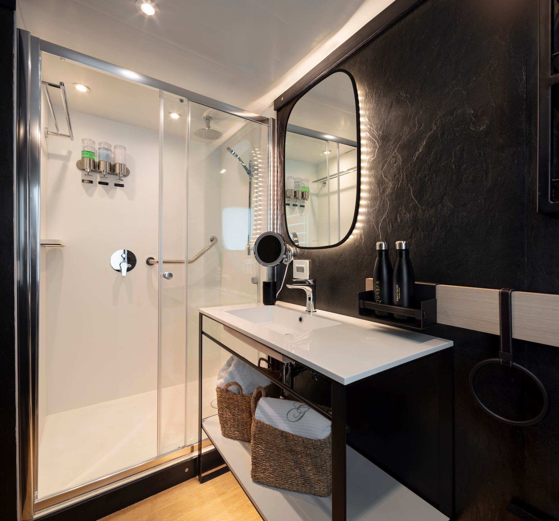 There is a master suite, 3 Ocean View suites and 5 additional cabins. All cabins have ensuite facilities n and the vessel is fully air-conditioned. Tenders & Toys: