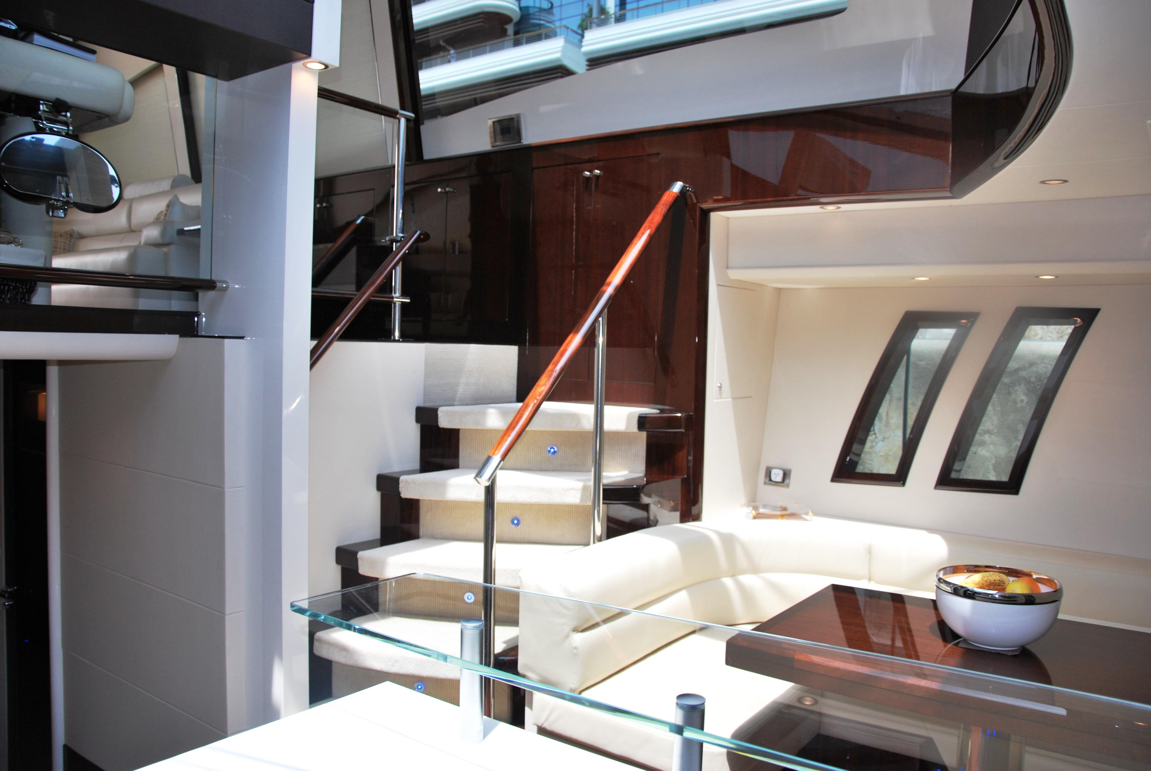 She has an upper salon with great views that has easy access to the aft deck with al fresco dining and sun pads and a lower salon great for dining and relaxing. There is an additional area to sunbathe forward.