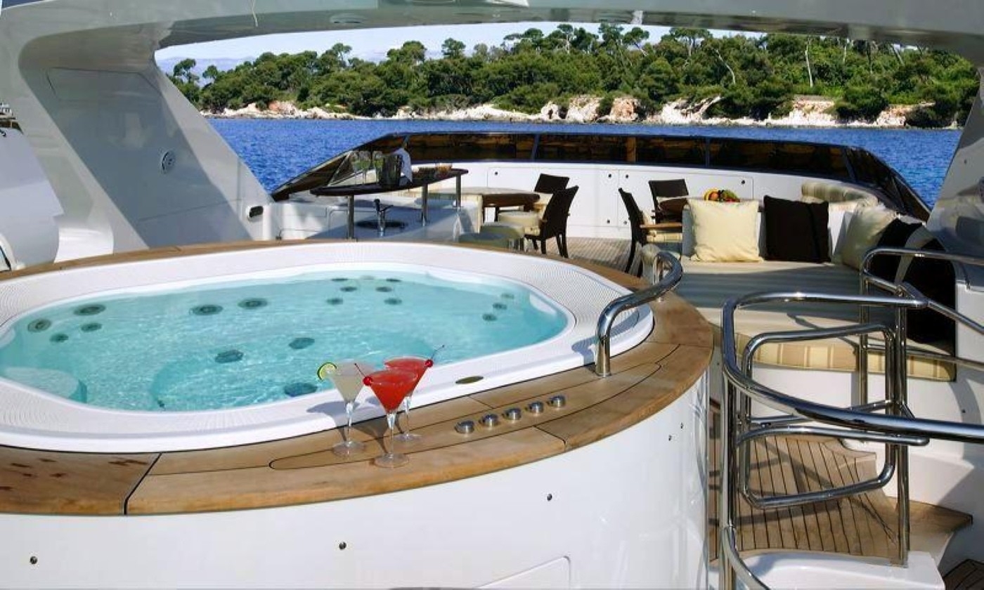 NOTABLE FEATURES OF MAMMA MIA 120': ~ great deck areas ~ Jacuzzi on upper deck ~ al fresco dining options ~ elegant interior ~ sky lounge with full bar and extra bathroom with stall shower ~ full-beam main deck master suite ~ ...