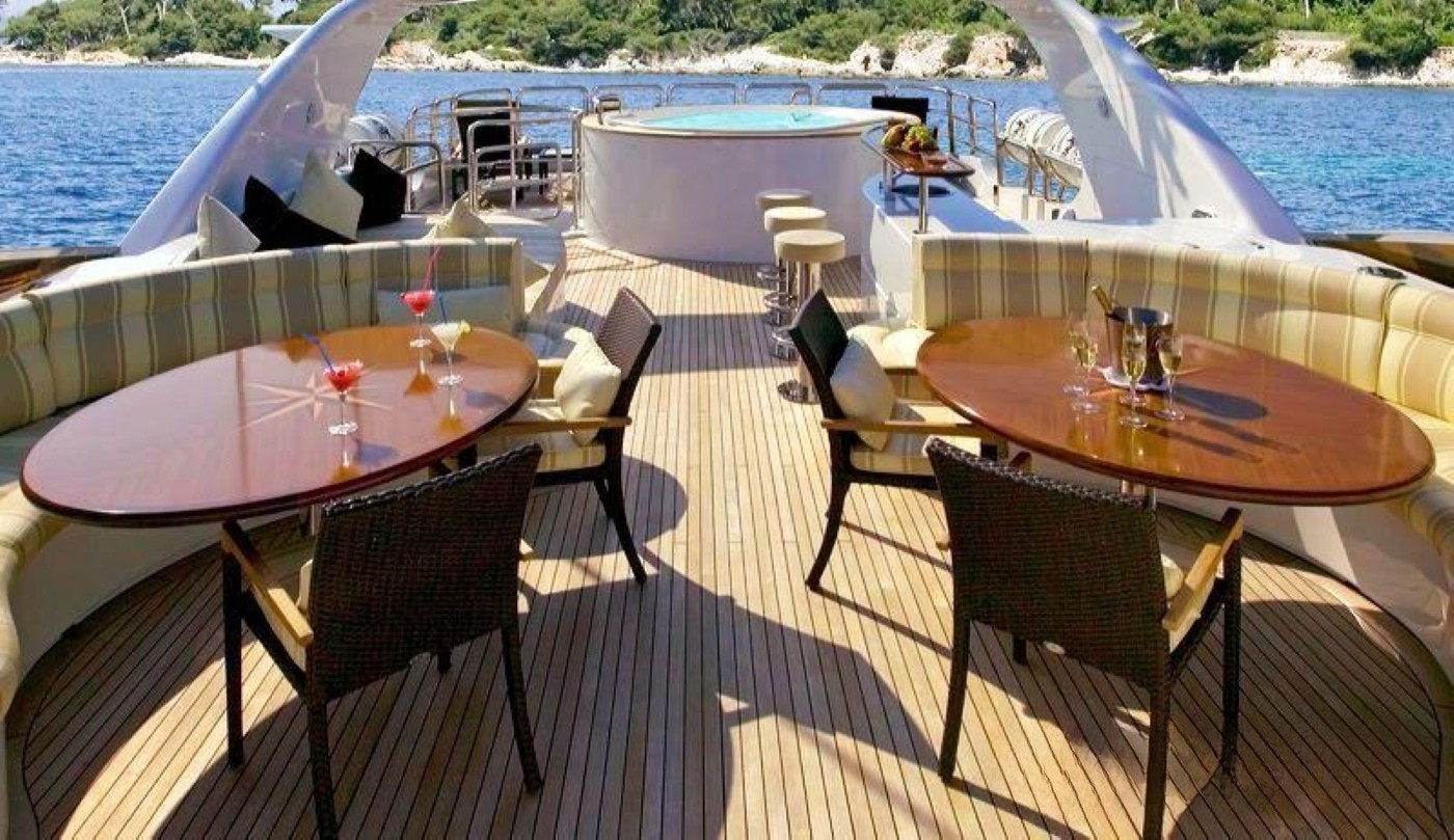 NOTABLE FEATURES OF MAMMA MIA 120': ~ great deck areas ~ Jacuzzi on upper deck ~ al fresco dining options ~ elegant interior ~ sky lounge with full bar and extra bathroom with stall shower ~ full-beam main deck master suite ~ ...