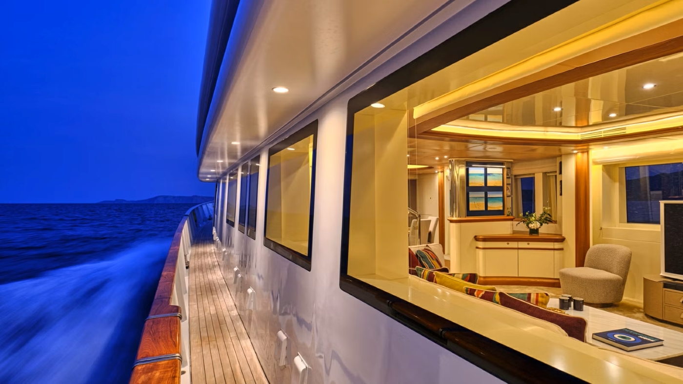 This yacht features four expansive decks, which offer guests the possibility of relaxing in the sun, enjoy the majestic views or dine al fresco. She has a wide variety of water sports equipment to enjoy from her newly extended swim platform.