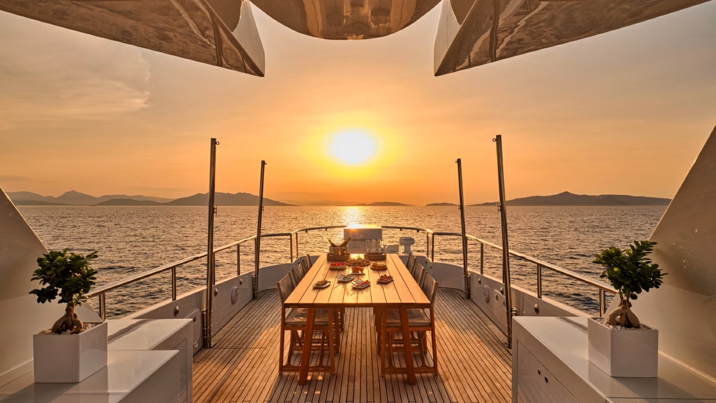 This yacht features four expansive decks, which offer guests the possibility of relaxing in the sun, enjoy the majestic views or dine al fresco. She has a wide variety of water sports equipment to enjoy from her newly extended swim platform.