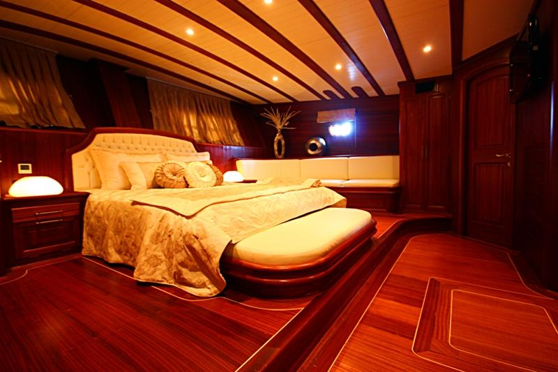 Luxury Gullet ARYF KAPTAN A accommodates up to twelve guests in six cabins. She has two master suites, 2 double cabins and 2 twin cabins, all with ensuite bathrooms, air-conditioning and flat screen televisions.