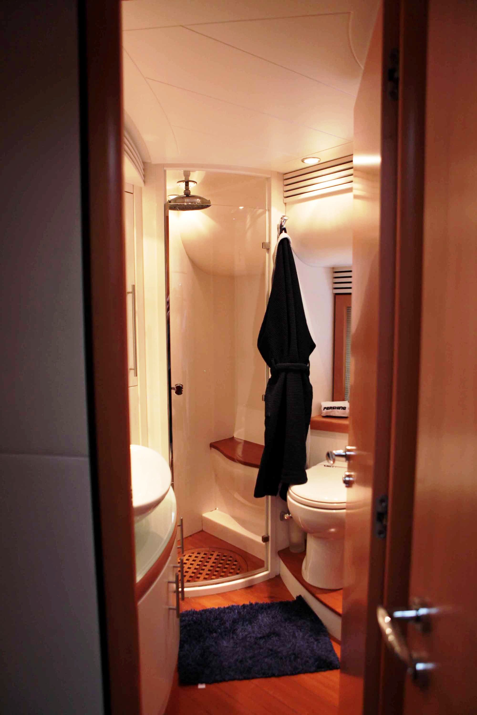 Her master stateroom has king size bed and the cabin is tastefully decorated with cherry wood furniture, cabinets, drawers, fridge, bar, and a lovely sofa, ensuite bathroom with shower. There is also a Plasma TV, stereo, DVD, Sky, air conditioning, safe and fridge.